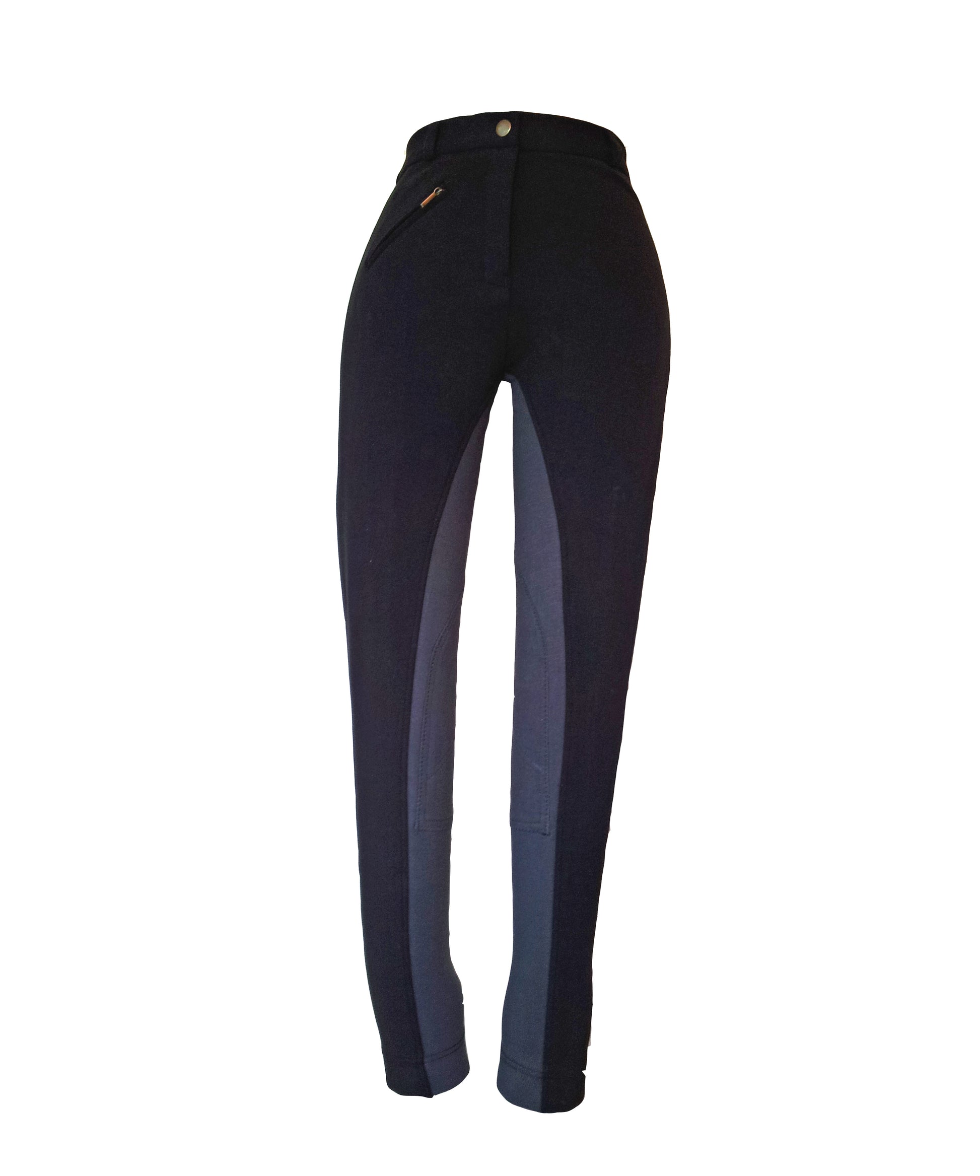 Ladies cotton jodhpurs in black with grey full seat